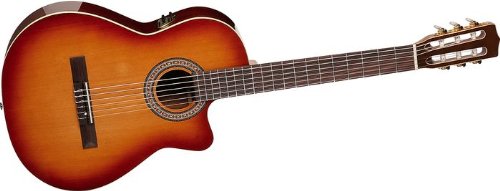 The Hybrid CW is the nylon-stringed guitar for the acoustic-electric player who, like most of us, is not necessarily a classical guitarist. As the name suggests, the Hybrid has mixed origins derived from traditional nylon-stringed guitars and a desire to meet the needs of modern guitar players.Hand-crafted in LaPatrie, Quebec, this smooth-sounding nylon-stringed guitar features a solid cedar top, mahogany back and sides, mahogany neck and rosewood fingerboard with a classical 2" (5.1 cm) nut width. However, this classical nut width won't seem so traditional when you feel the unique radiused fingerboard. Not only does it allow for faster playability, but also for a new level of comfort not readily available on a standard classical nylon-string fingerboard. Although the Hybrid's neck width and string spacing are sized to classical guitar standards, a truss rod allows for a thinner neck profile. Besides the new comfort of the radiused fingerboard, the Hybrid also allows for access to the upper frets via a cutaway body. Some other esthetic goodies include cream binding, a detailed sound-hole rosette and a hand finished, contoured headstock. As with all acoustic models in the Godin family only genuine lacquer finish is used, allowing the top to breathe and vibrate freely. This strong belief in applying genuine lacquer translates into a guitar that will experience and benefit from the aging process...the more the instrument is played, the better it will sound over time. For the gigging/working musician the Hybrid CW comes standard issue with Godin Quantum II electronics and the innovative TRIC (Thermal regulated instrument case) to thermally protect and securely house the Hybrid CW.